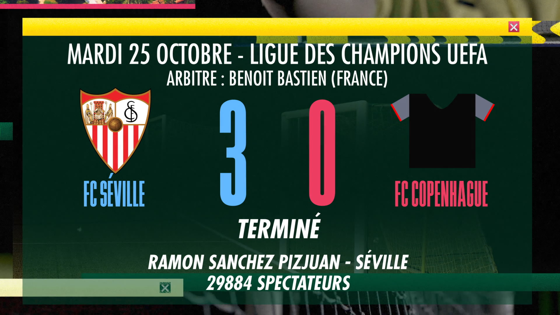 FC Copenhague - FC Séville. FC Séville 3-0 FC Copenhague. 3 buts à 0.